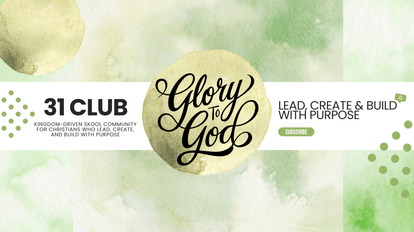 The 31 Club is a Kingdom-driven Skool community for Christians who lead, create, and build with purpose. Inspired by Proverbs 31, this space equips faith-filled entrepreneurs and leaders to grow in discipline, excellence, and God-centered clarity. Here you’ll learn how to steward your calling, strengthen your character, and build a business that honors Christ in every season.