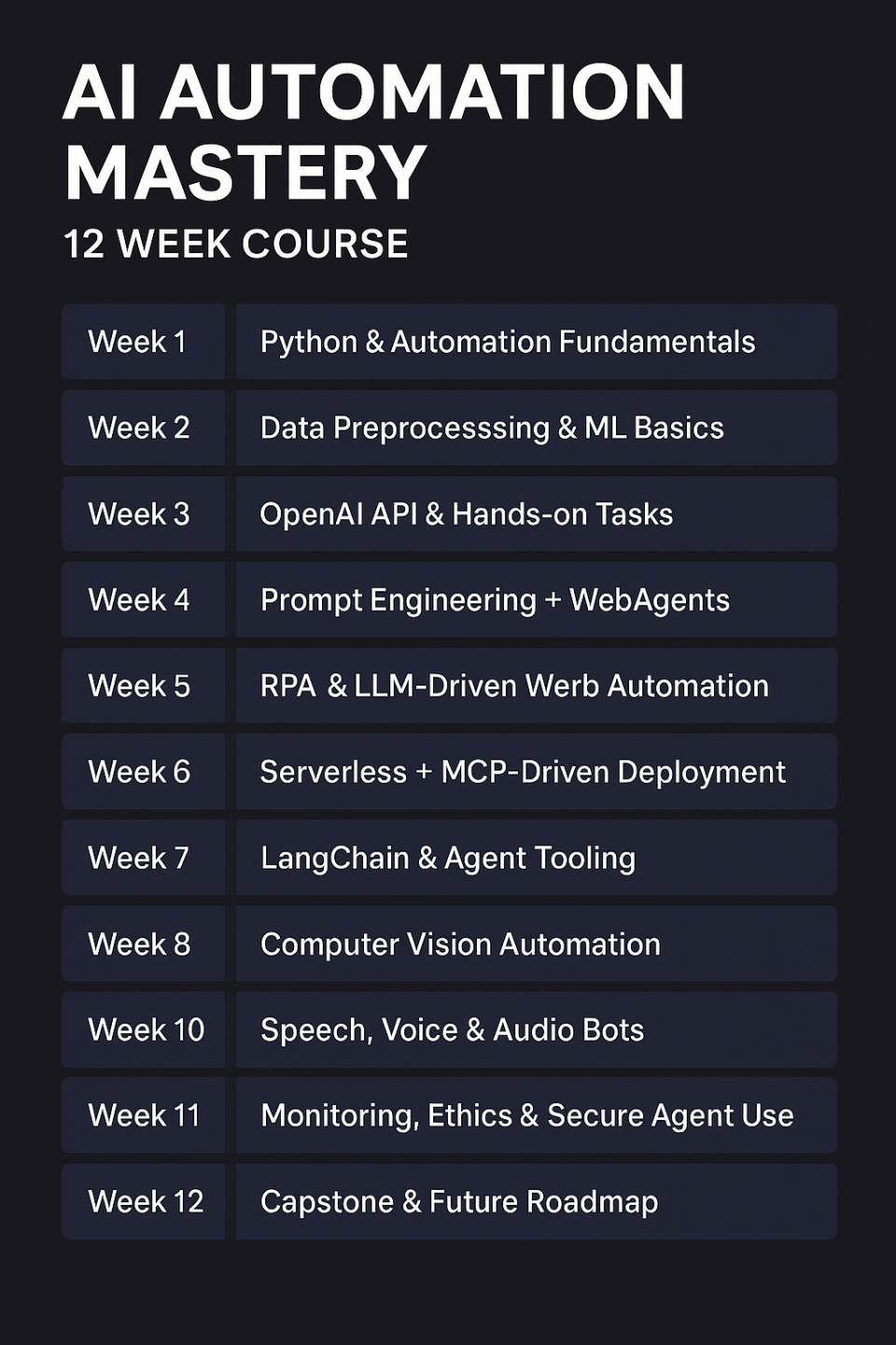 Weβre launching a powerful 12-week AI Automation course β just 1 hour a day β designed for busy professionals like you. Learn how to master the tools behind AI workflows, automation agents, and real-world integrations. No fluff β just practical learning.