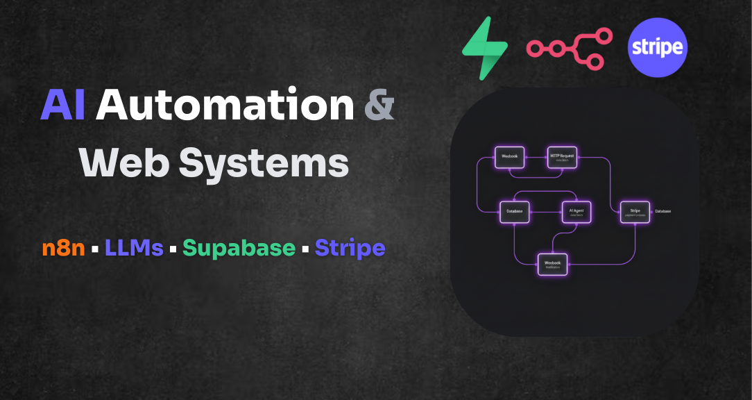 n8n ⢠LLMs (GPT, Claude, Gemini) ⢠Supabase ⢠Stripe