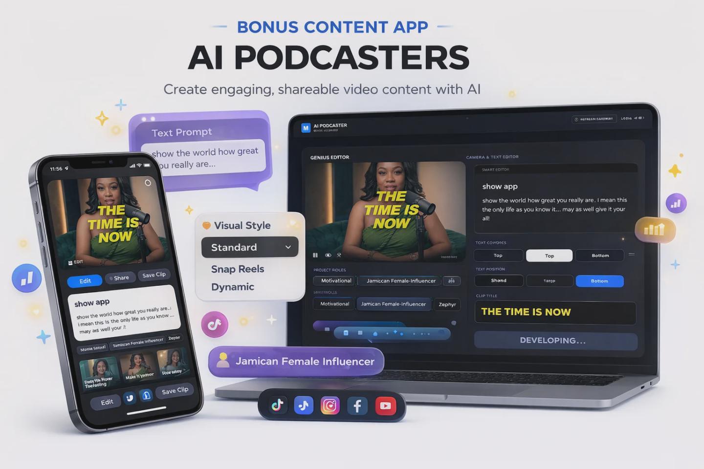 AI PODCASTER APPS TO GENERATE CONTENT FASTER. FOR INDIVIDUALS TIRED OF TOO MANY SUBSCRIPTIONS AND TOO MANY STEPS. CREATE YOUR STAGE TODAY! + BONUSES