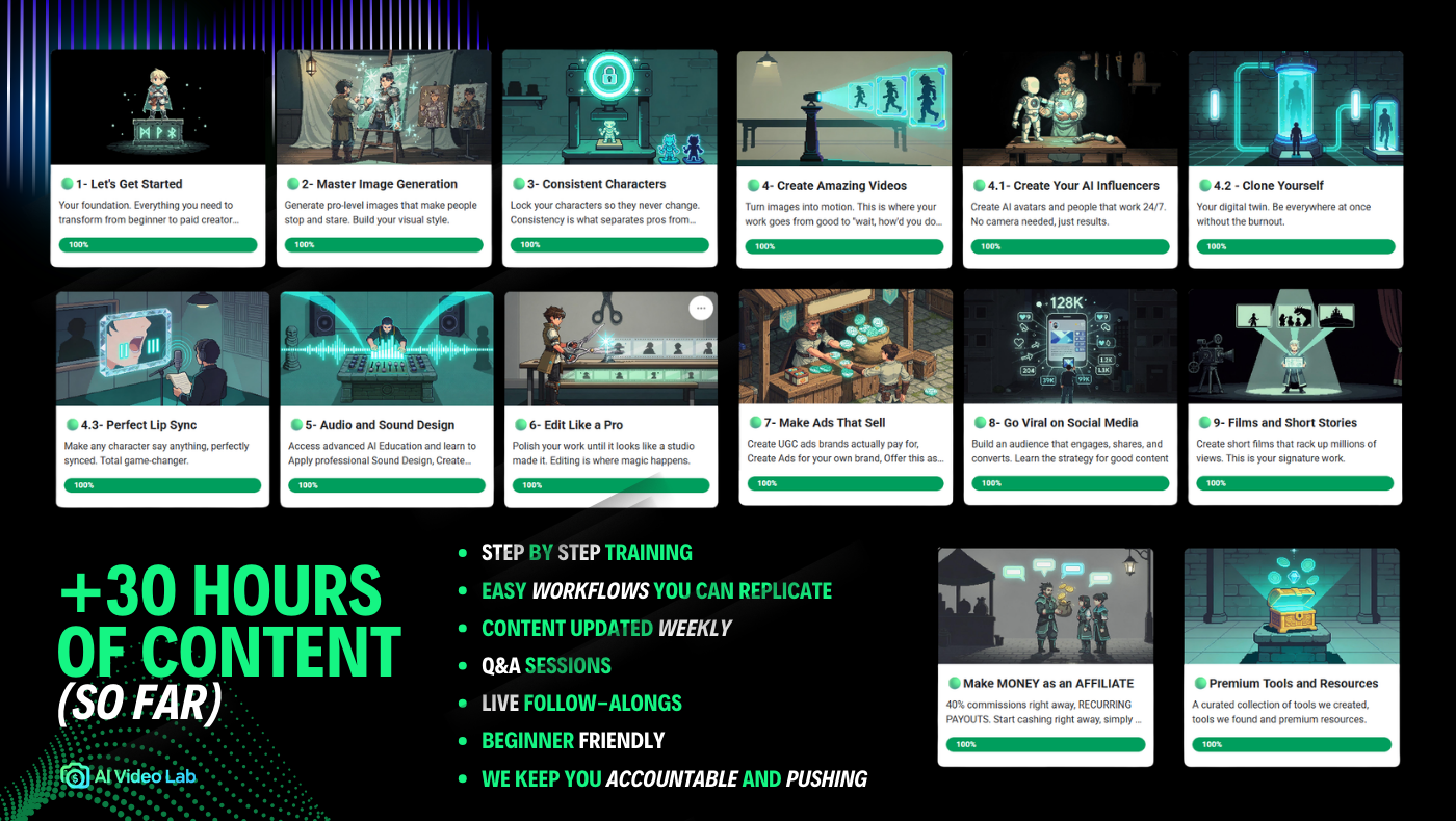 πŸ’ŽLess than $0.30/day⚑Join the AI Video Lab today.