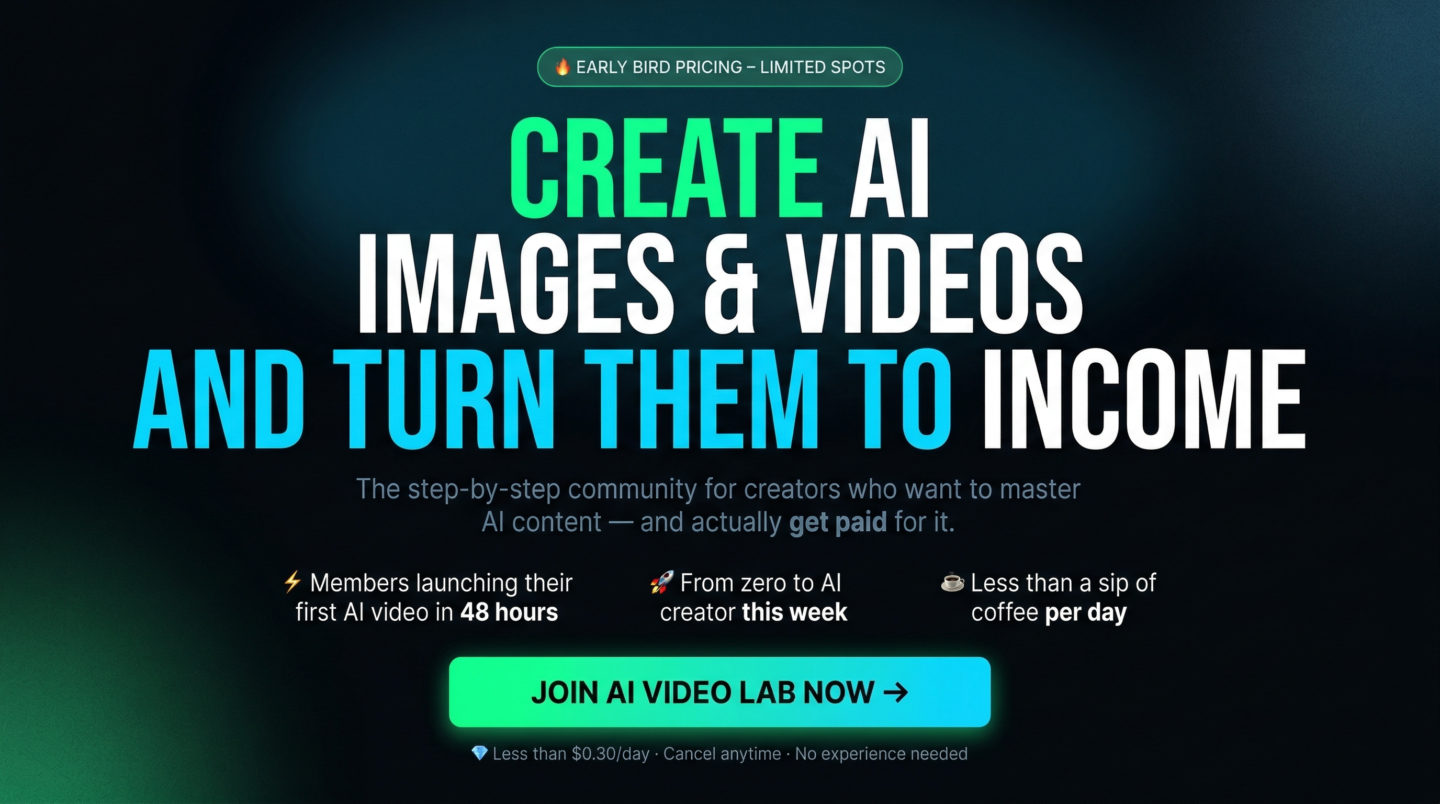 Join the AI Video Lab and Create AI videos & Images that brands pay for, Influencers, Clones, UGC, Ads, films. Join the 48-hour challenge inside 🧑