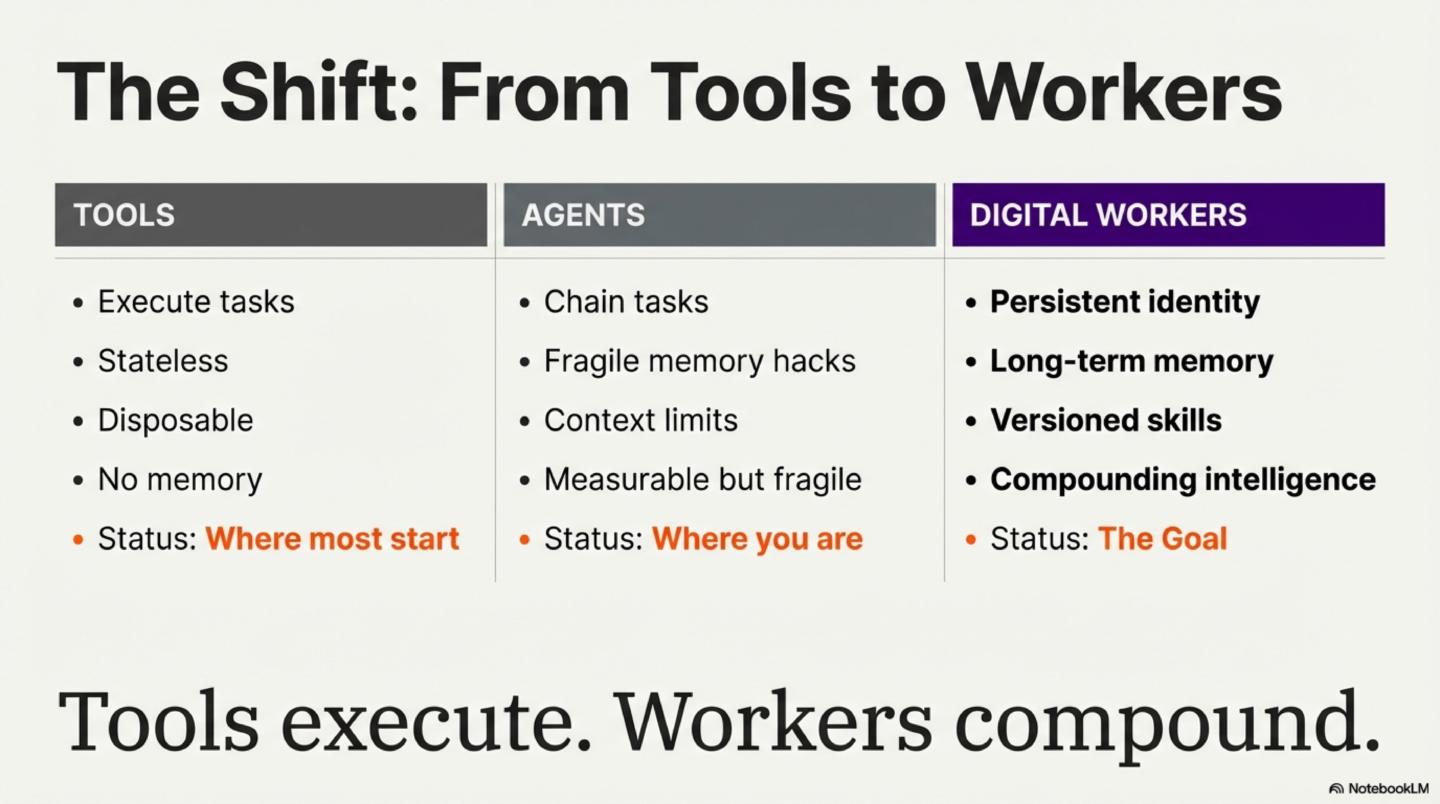 We teach the mental models behind Digital Employees — persistent AI workers with memory, skills, and accountability.