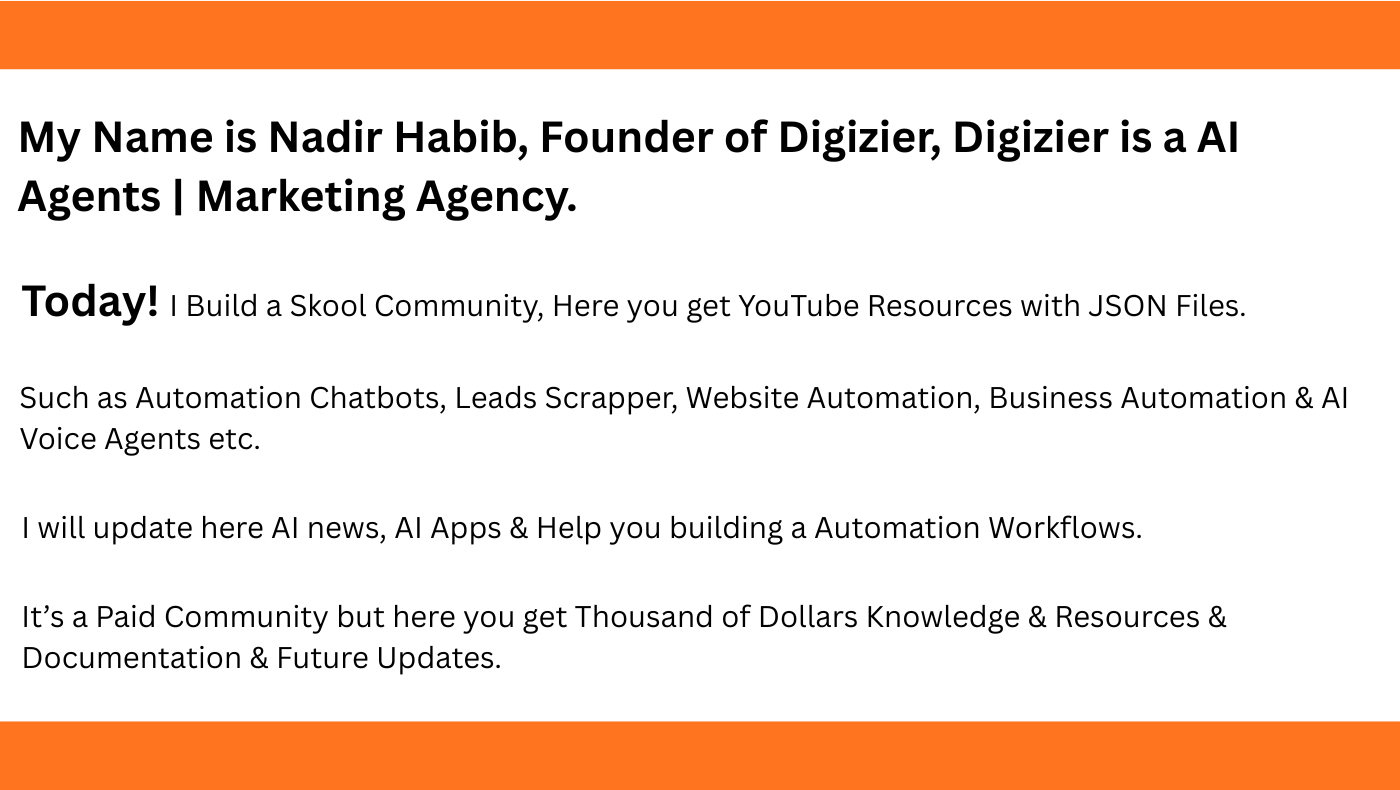 AI Digizier is a AI Agent Base Community in Skool, Here You Get n8n Workflow JSON Files with Tutorials, knowledge for fast and smart growth.