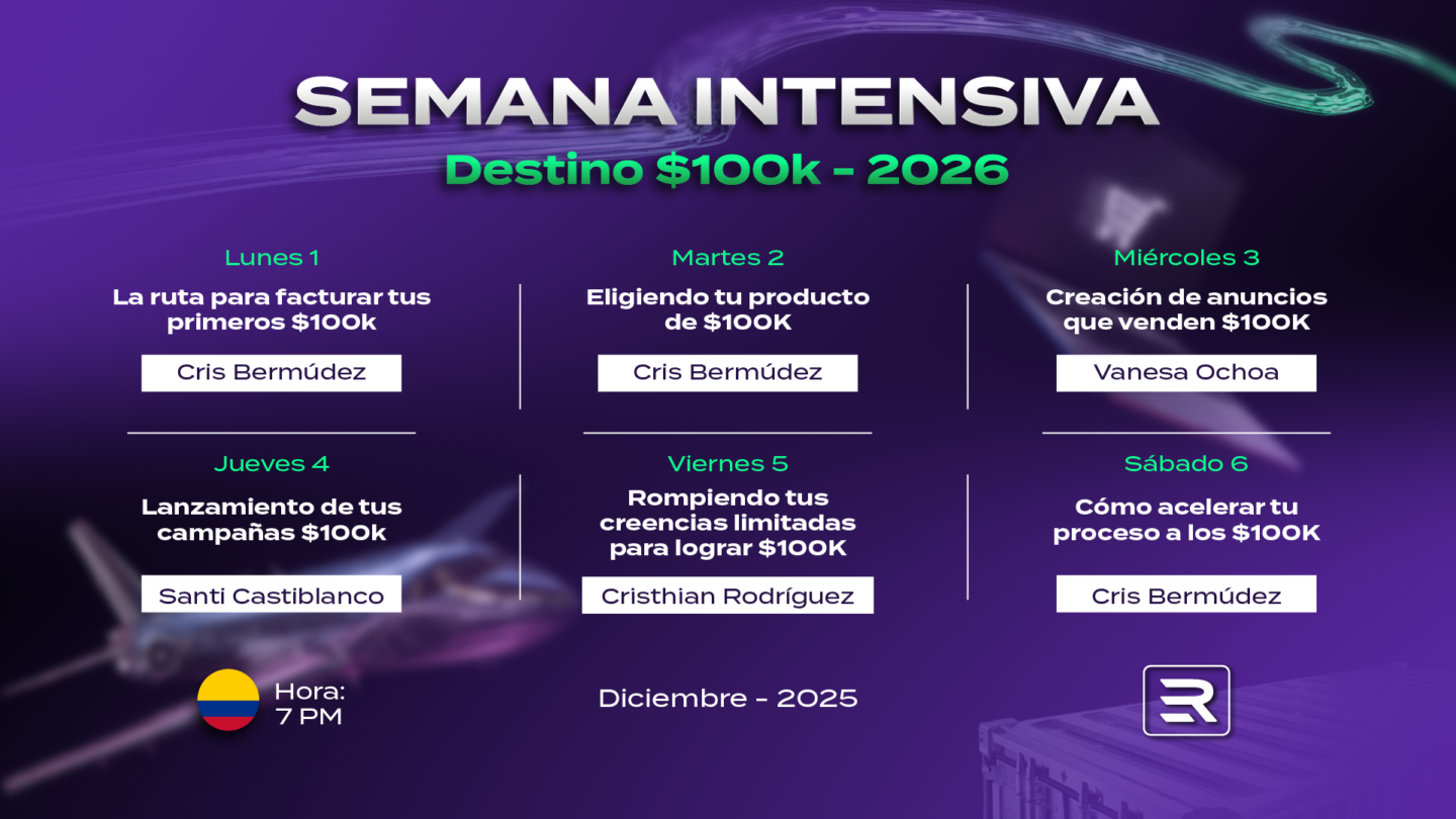 ✅ Además, tendrás acceso a la bóveda de productos ganadores, a la semana intensiva de cero a venta, y soporte directo de Cristian Bermúdez y su equipo de expertos.