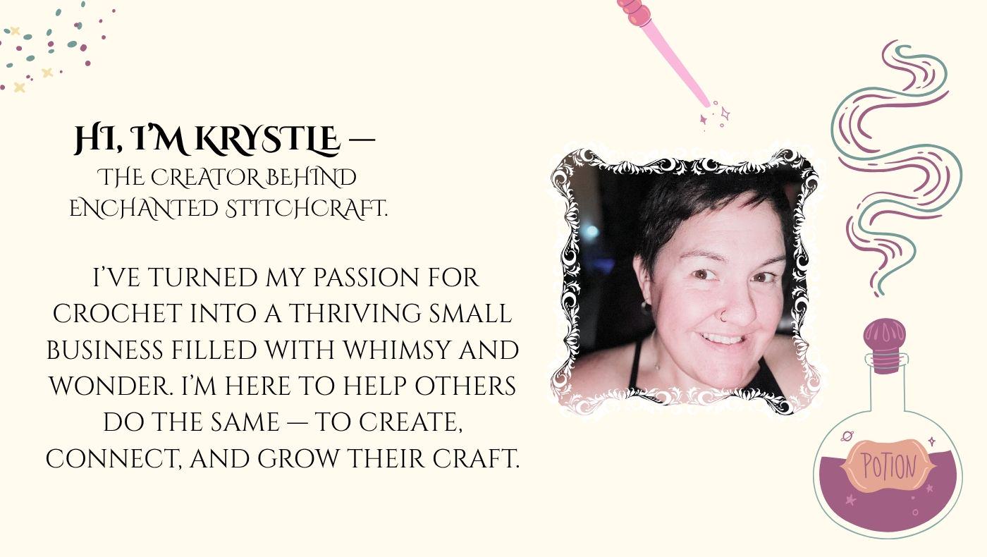 Hi, I’m Krystle, the maker behind Enchanted Stitchcraft — where yarn meets magic and creativity has no limits. 💜