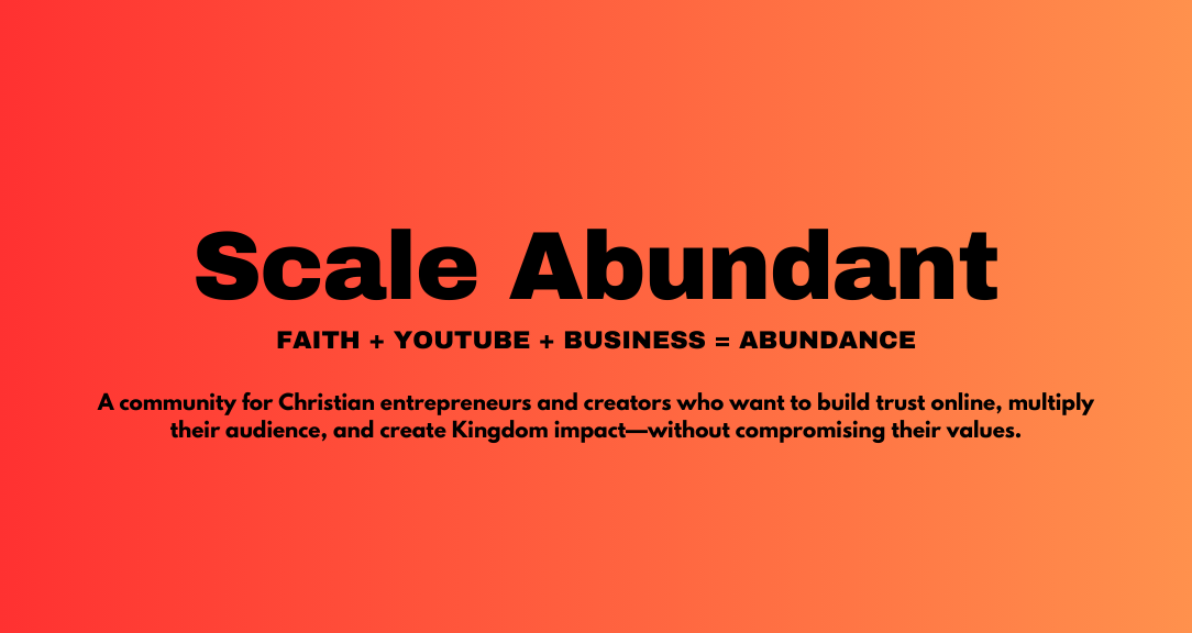 Turning trust built on YT into a thriving business. Finding a like-minded community of believers on the same journey. That’s why Scale Abundant exists: to help you align Biblical wisdom with proven YouTube + online business strategies so you can multiply your reach, revenue, and results. Inside this community, you’ll find: