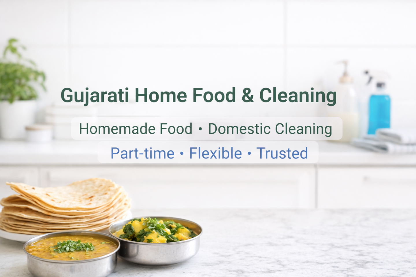 We provide home-style Gujarati food and domestic cleaning services at your doorstep.