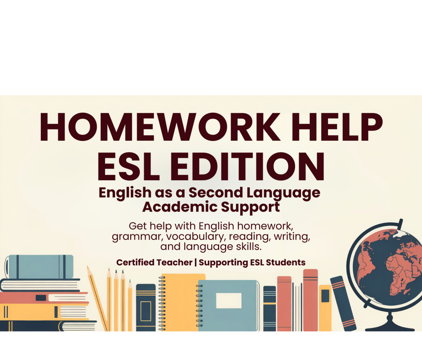 Homework Help ESL Edition exists to help you grow academically, improve your English, and feel supported every step of the way.