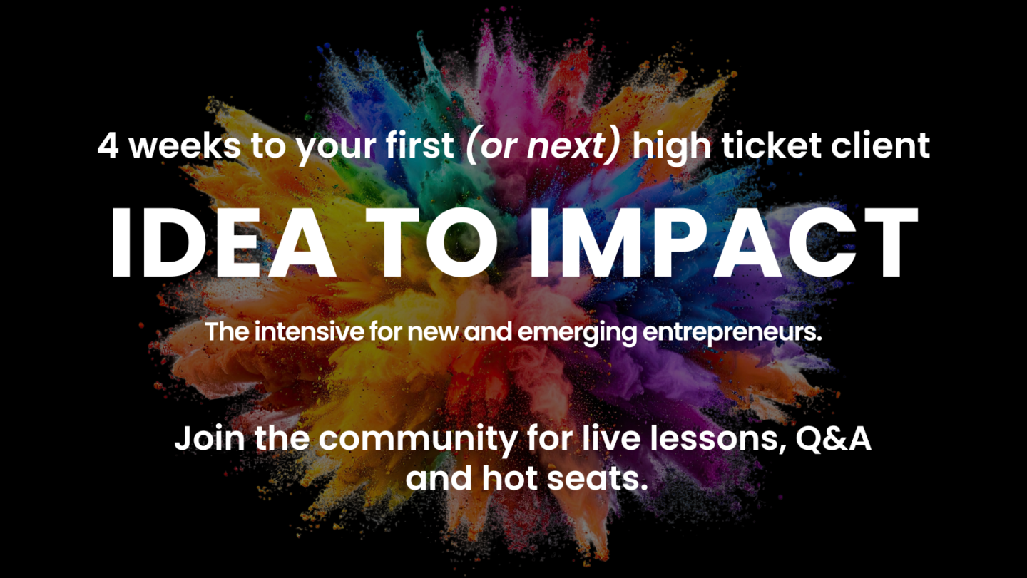 This is the free group experience of the Idea to Impact intensive. Join us for the workshops, hot seat coaching and prize draw.