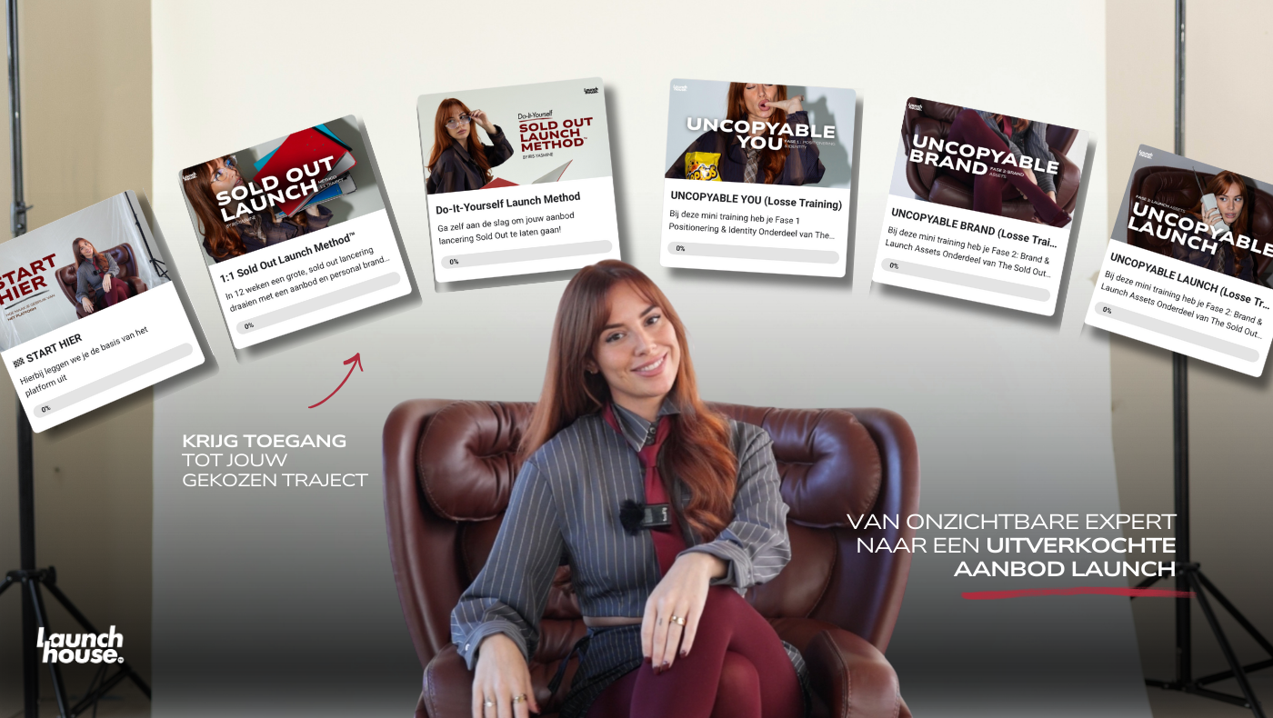 In Launch House™ ontvang jij jouw gekozen traject waarin je gaat werken aan jouw sold out aanbod & personal brand - geen copycat, geen boss babe.