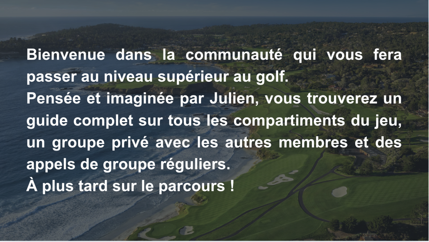 Bienvenue dans la communauté de Julien, là où vous trouverez toutes les ressources pour passer au niveau supérieur au golf !