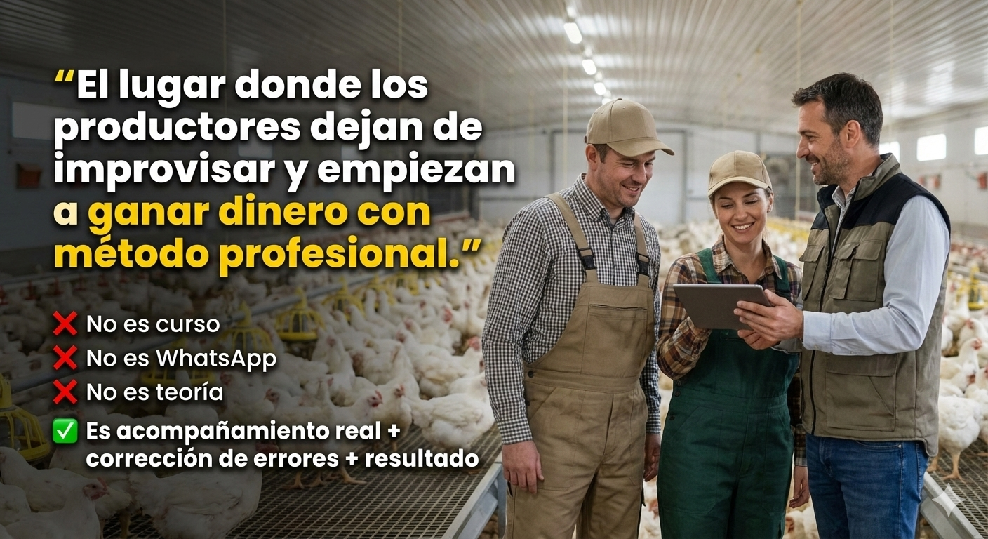 Aquí pasas de criar pollos a dirigir una producción profesional, aplicando los 5 Pilares Avícolas que marcan la diferencia entre perder y ganar: