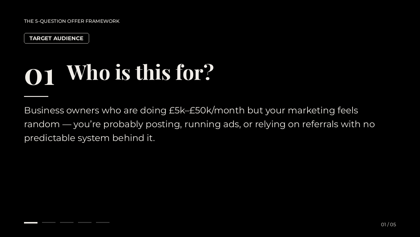 Business owners who are doing £5k–£50k/month but your marketing feels random — you're probably posting, running ads, or relying on referrals with no predictable system behind it.