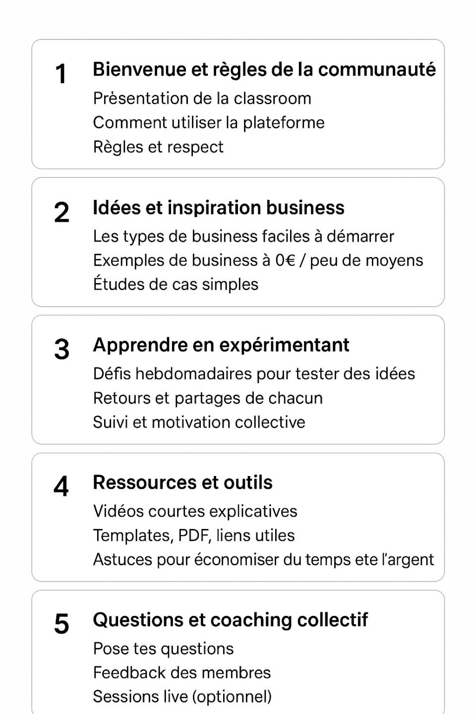 Rejoins cette communauté si tu veux apprendre le business en direct, tester des idées, et progresser avec moi. Pas besoin d’expérience, ici on découvre ensemble toutes les étapes pour lancer, gérer et réussir dans différents business.