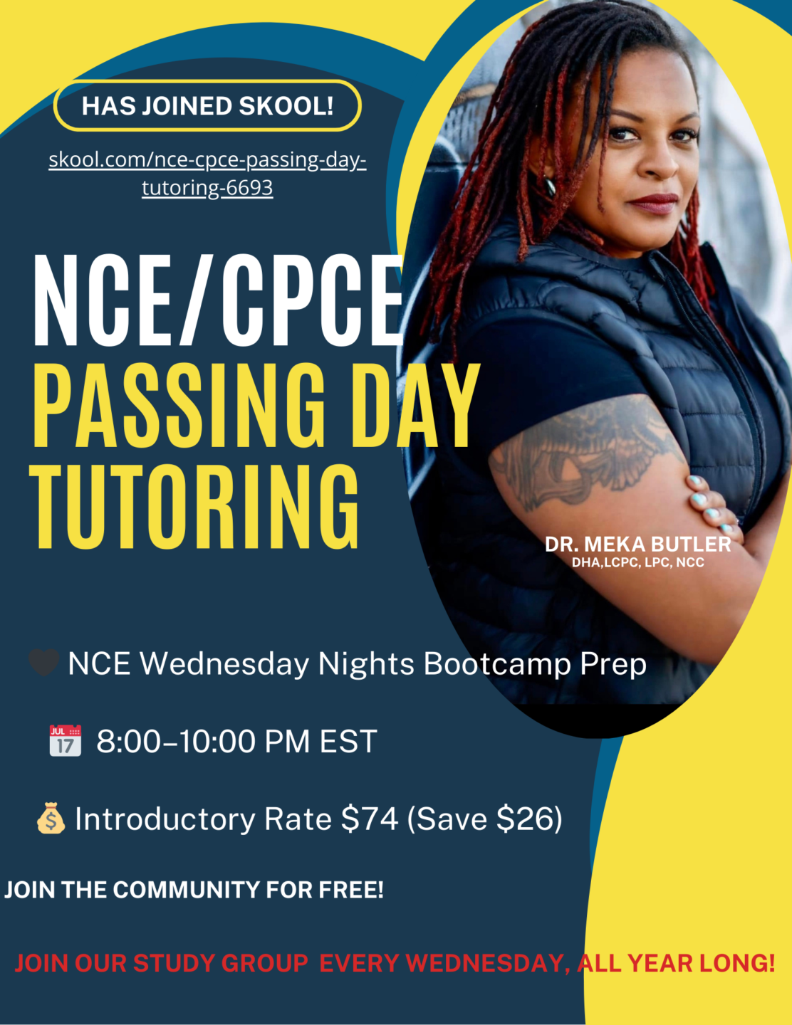 This community is for first-time and repeat NCE test-takers, counselors with test anxiety, students who need structure, and anyone tired of studying alone.