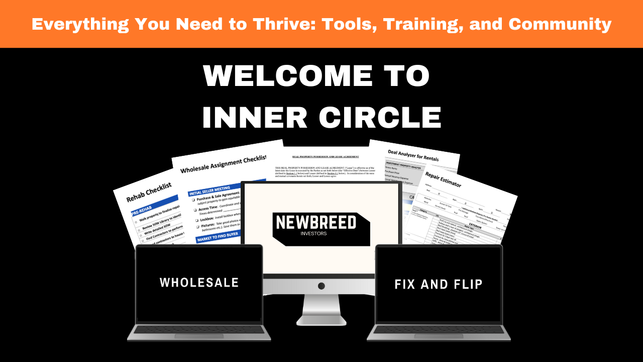 A community designed to replace your income and become a real estate investor through wholesale/flipping/rentals.