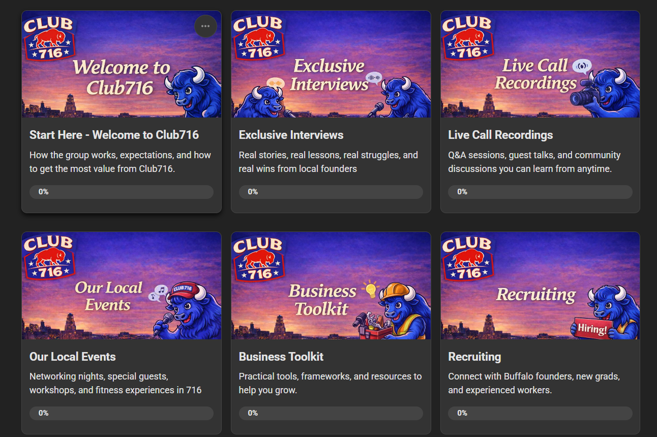 Club716 is a free, Buffalo-based business community created to connect local founders, CEOs, and aspiring business owners in one place.