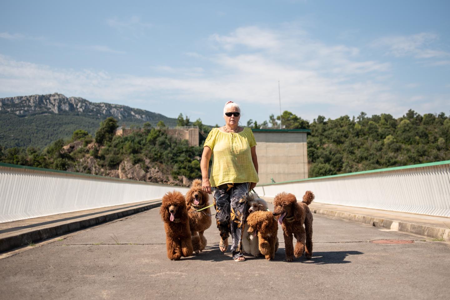Wandelen met de poedels in Darnius, Catalunia, Spanje