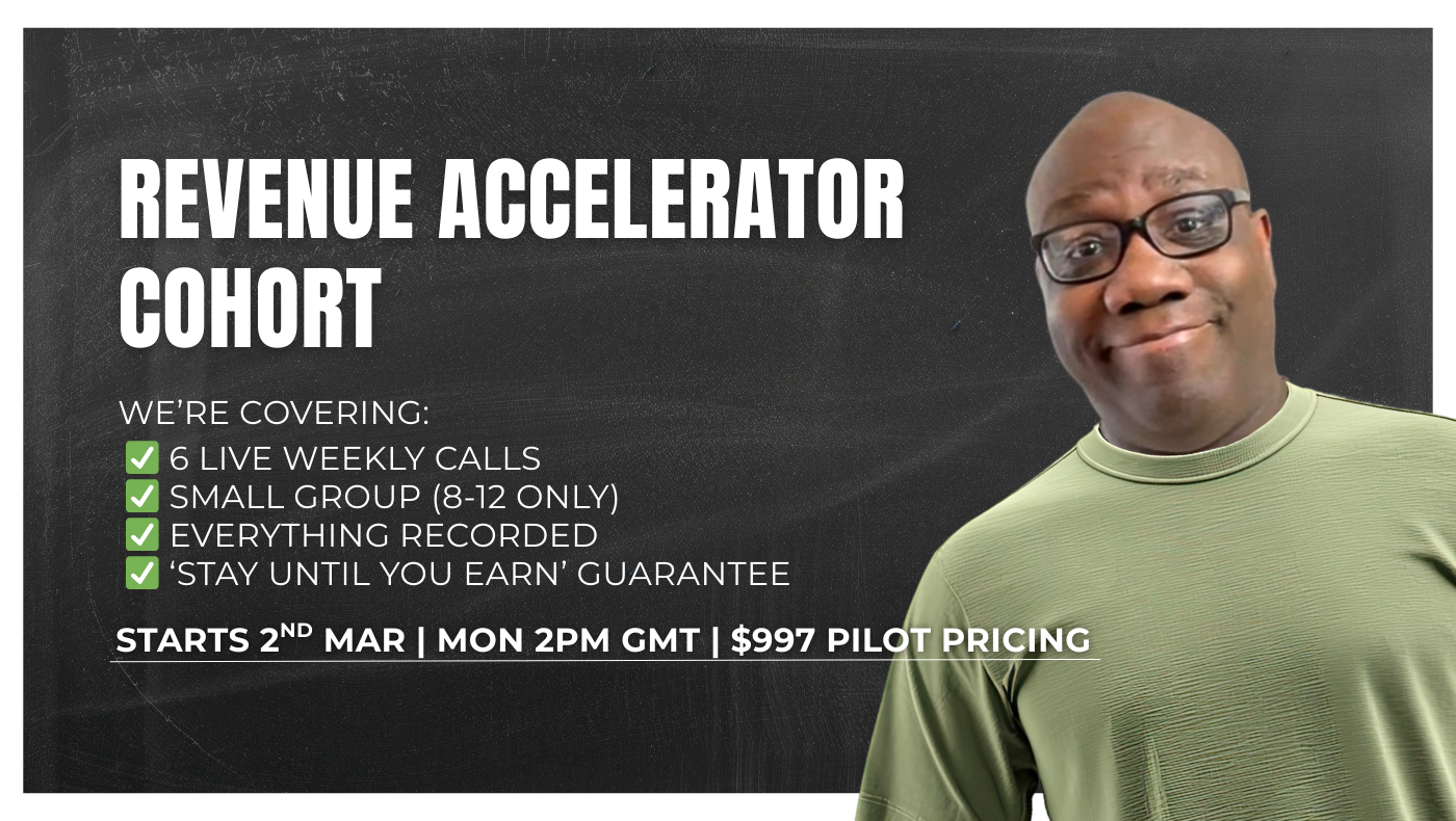 The Revenue Accelerator Cohort is a 6-week small group programme for professionals who are ready to turn their content into consistent revenue.
