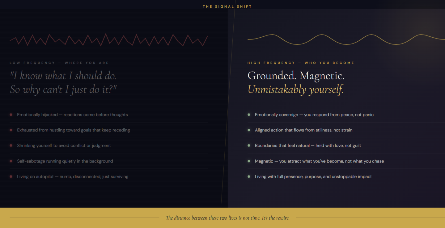 Here's what nobody tells you: transformation doesn't begin when you push harder. It begins when you stop. Right at the edge of everything familiar — that uncomfortable, unknown place most people turn away from — that's where your real life is waiting.