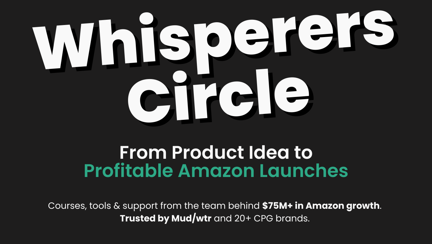 We've helped brands drive $75M+ in Amazon sales. Worked with Mud/wtr and many other CPG brands. Built and exited our own brand. The Whisperers Circle is everything we've learned - courses, tools, resources, and direct support for founders going from product idea to profitable launch on Amazon.