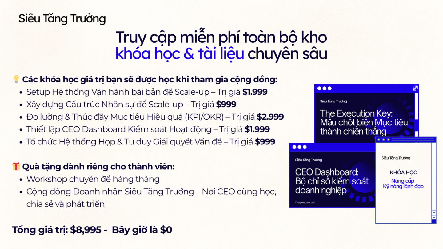 🌱 Siêu Tăng Trưởng không chỉ là tên gọi, mà là cam kết giúp bạn và đội ngũ bứt phá từng bước, đạt Mục tiêu lớn hơn, nhanh hơn, bền vững hơn.