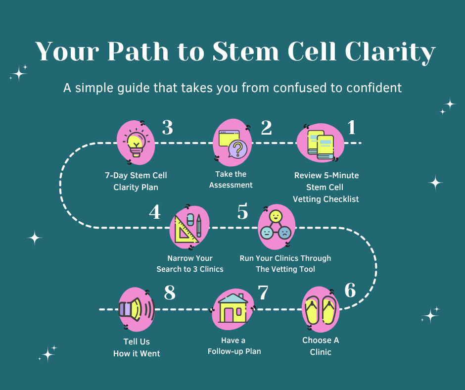 Our community is built around one goal: helping you understand how to spot real science fast. The center of everything we offer is the 5 Minute Stem Cell Clinic Vetting Checklist. It shows you how to read clinics the right way so you avoid overpriced treatments weak cell products and common marketing traps.