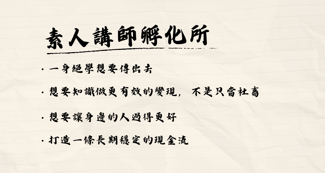 如果你想做的,不只是「分享知識」,而是想認真經營講師職涯,那麼,這裡就是你該加入的地方。
