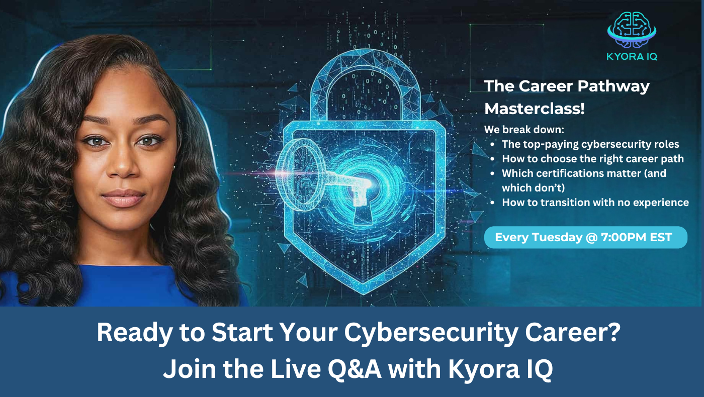 Want to fast-track your cybersecurity career? Download the Kyora IQ mobile app for full training at $99/mo. For mentorship and coaching, join our Cybersecurity Career Blueprint Skool Community for just $20/mo.