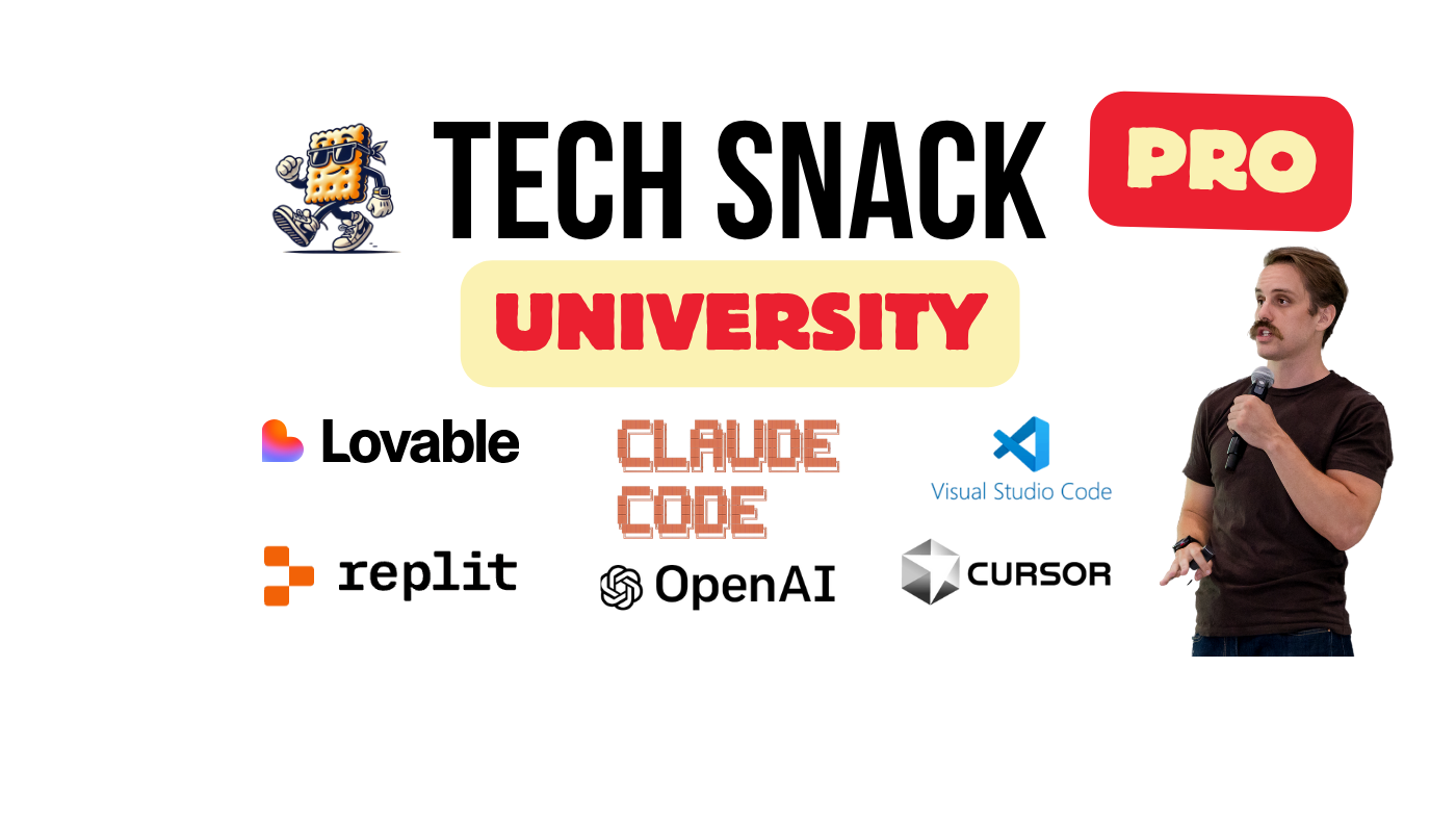 Tech Snack PRO is the cleanest path to production-ready vibe coded apps. Sign up & get your first app built in 30 days, guaranteed.