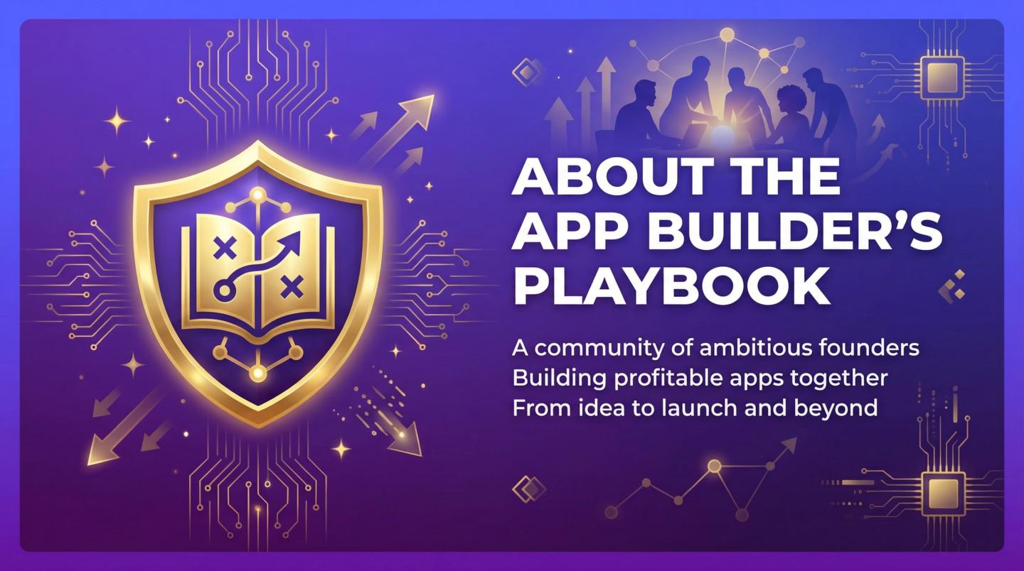 The App Builder's Playbook is a private community for founders, creators, & entrepreneurs who are serious about building & launching profitable apps.