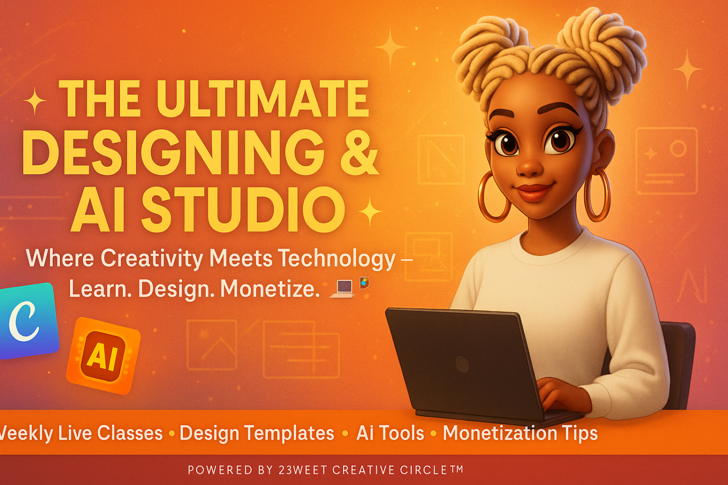 Hey Besties! 💕 You’re officially in the creative headquarters where design meets innovation! This space is built for creatives who want to master design tools, explore AI, and turn their skills into digital income streams.