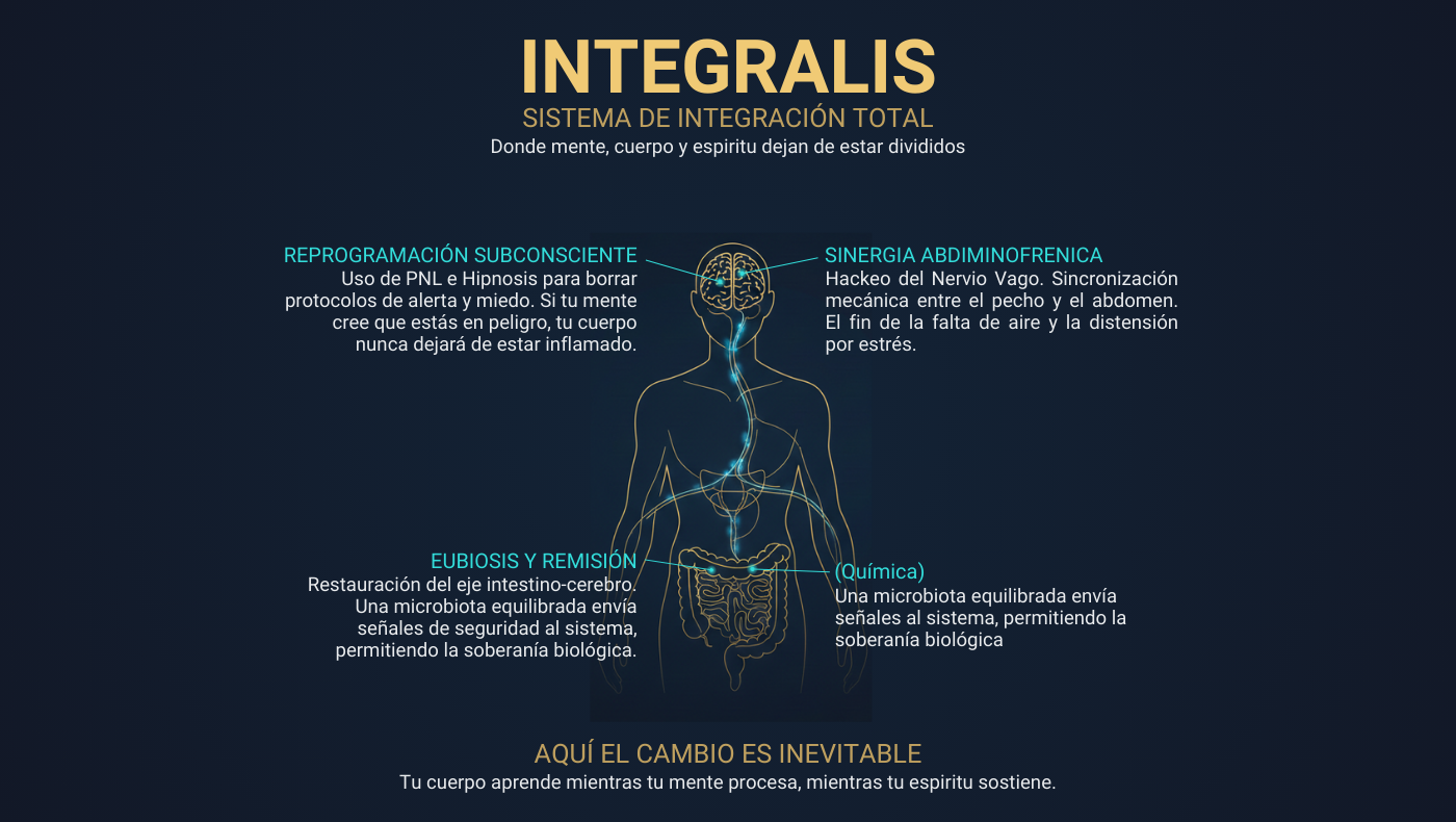 INTEGRALIS nace de una verdad incómoda: la mayoría de las personas no se detienen porque no puedan, sino porque su sistema interno las frena. Cada vez que intentas avanzar, exponerte o ir a otro nivel, tu cuerpo activa respuestas de protección aprendidas: tensión, miedo, evitación, autosabotaje. No es debilidad. Es un sistema desalineado.